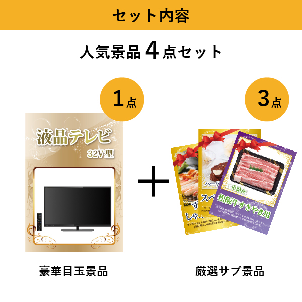 「32型液晶テレビ」をメイン景品とした、メイン景品1点とサブ景品3点を合わせたセット!
