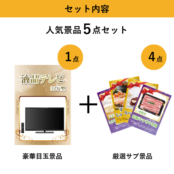 「32型液晶テレビ」をメイン景品とした、メイン景品1点とサブ景品4点を合わせたセット!