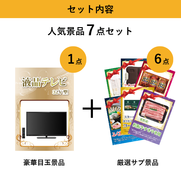 「32型液晶テレビ」をメイン景品とした、メイン景品1点とサブ景品6点を合わせたセット!