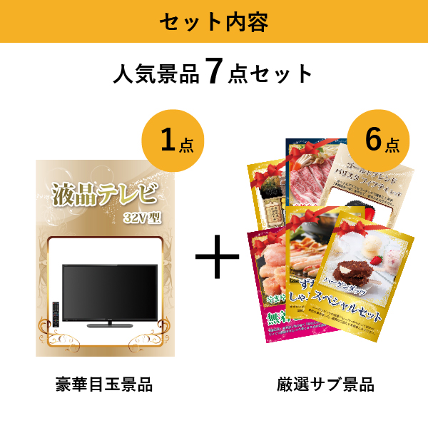 「32型液晶テレビ」をメイン景品とした、メイン景品1点とサブ景品6点を合わせたセット!