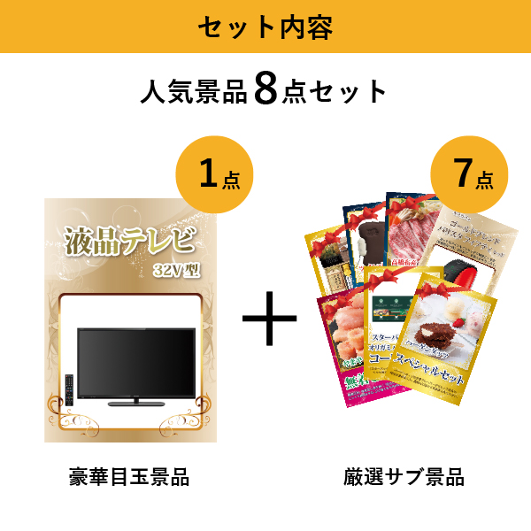 「32型液晶テレビ」をメイン景品とした、メイン景品1点とサブ景品7点を合わせたセット!