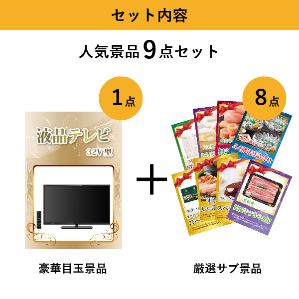 「32型液晶テレビ」をメイン景品とした、メイン景品1点とサブ景品8点を合わせたセット!