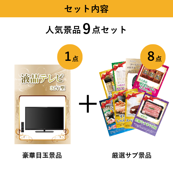 「32型液晶テレビ」をメイン景品とした、メイン景品1点とサブ景品8点を合わせたセット!