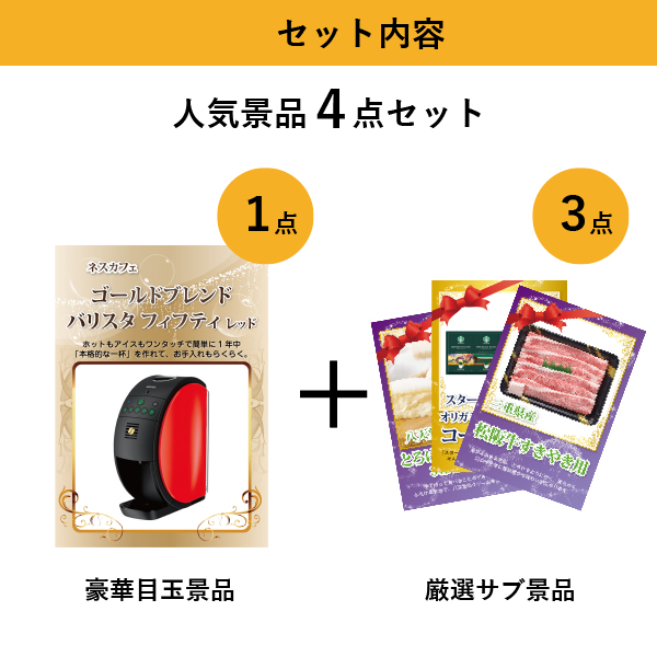 「ネスカフェ ゴールドブレンド バリスタ フィフティ レッド」が目玉の人気景品4点セットB|景品ならPIARY(ピアリー)
