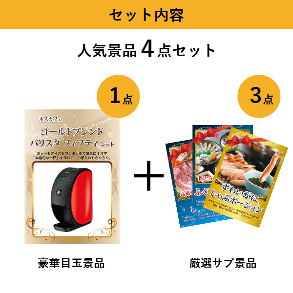 「ネスカフェ ゴールドブレンド バリスタ フィフティ レッド」が目玉の人気景品4点セットC| 結婚式 二次会 忘年会におすすめ!|景品ならPIARY(ピアリー)