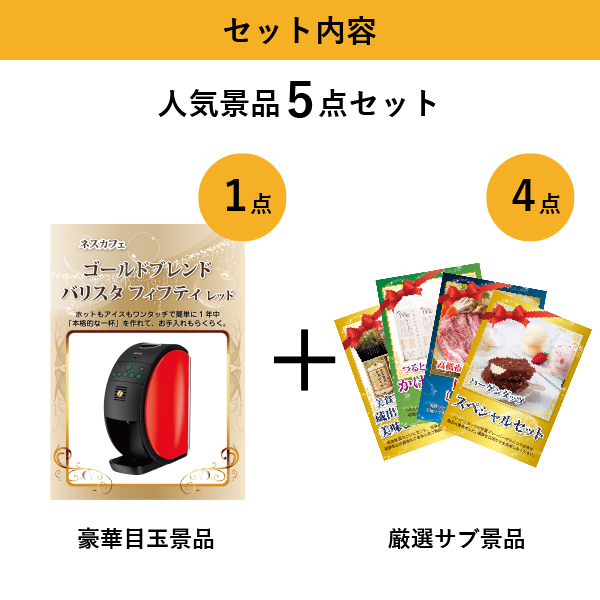 「ネスカフェ ゴールドブレンド バリスタ フィフティ レッド」が目玉の人気景品5点セットC| 結婚式 二次会 忘年会におすすめ!|景品ならPIARY(ピアリー)