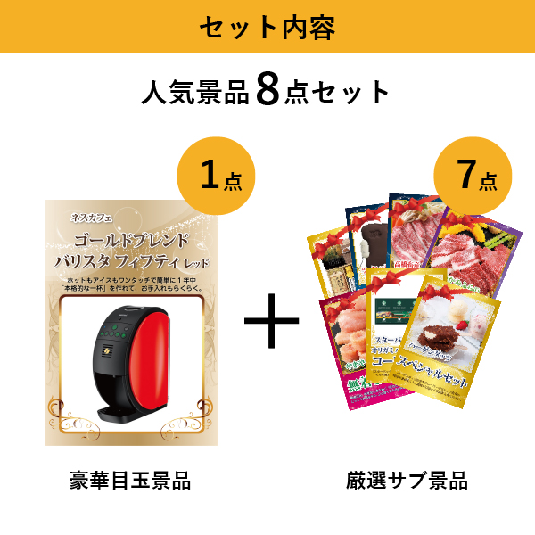 「ネスカフェ ゴールドブレンド バリスタ フィフティ レッド」が目玉の人気景品8点セットC|景品ならPIARY(ピアリー)