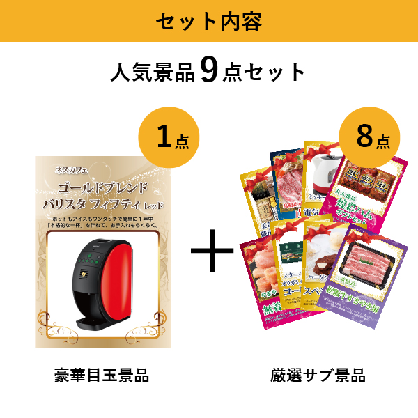 「ネスカフェ ゴールドブレンド バリスタ フィフティ レッド」が目玉の人気景品9点セットC| 結婚式 二次会 忘年会におすすめ!|景品ならPIARY(ピアリー)