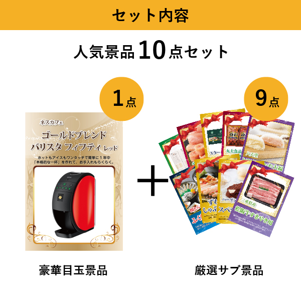 「ネスカフェ ゴールドブレンド バリスタ フィフティ レッド」が目玉の人気景品10点セットA|景品ならPIARY(ピアリー)