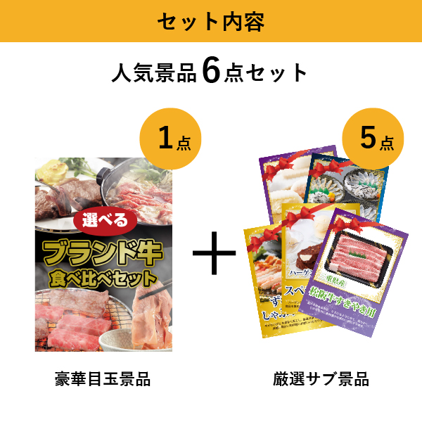 「選べるブランド牛 食べ比べセット」をメイン景品とした、メイン景品1点とサブ景品5点を合わせたセット!