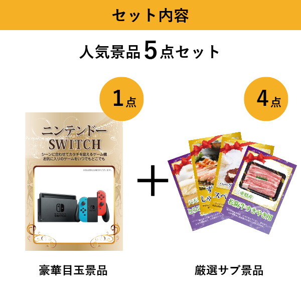 「ニンテンドーSWITCH」が目玉の人気景品5点セットA| 結婚式 二次会 忘年会におすすめ!|景品ならPIARY(ピアリー)