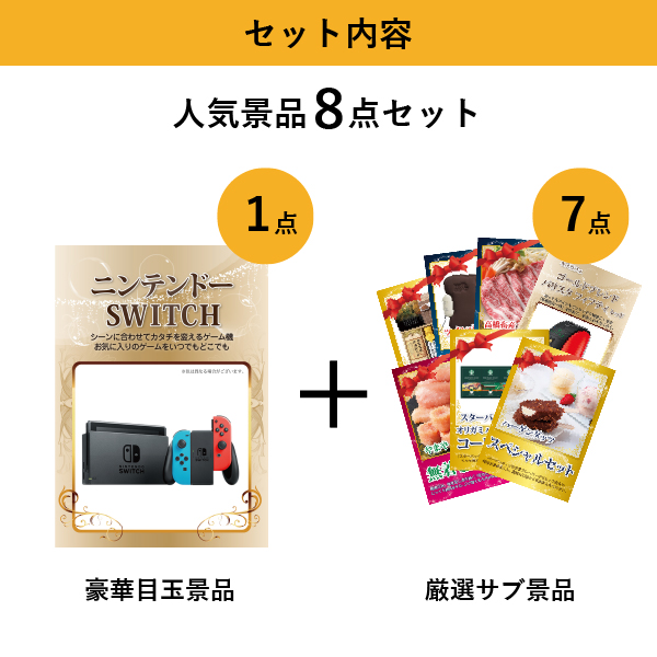 「ニンテンドーSWITCH」が目玉の人気景品8点セットC| 結婚式 二次会 忘年会におすすめ!|景品ならPIARY(ピアリー)