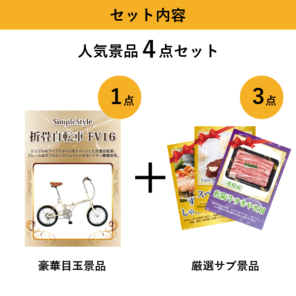 「SimpleStyle 折畳自転車 FV16」をメイン景品とした、メイン景品1点とサブ景品3点を合わせたセット!