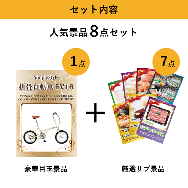 「SimpleStyle 折畳自転車 FV16」をメイン景品とした、メイン景品1点とサブ景品7点を合わせたセット!