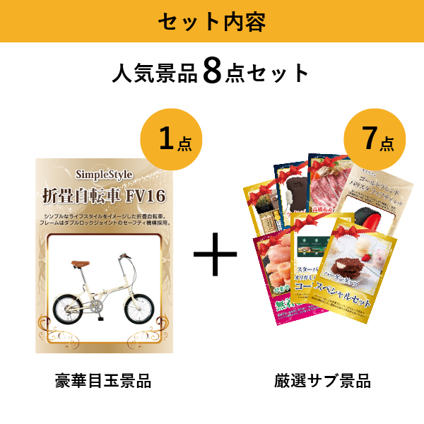 「SimpleStyle 折畳自転車 FV16」をメイン景品とした、メイン景品1点とサブ景品7点を合わせたセット!