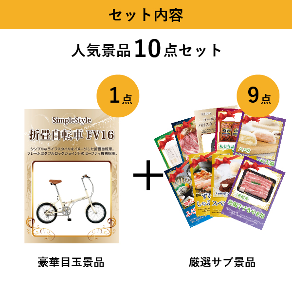 「SimpleStyle 折畳自転車 FV16」をメイン景品とした、メイン景品1点とサブ景品9点を合わせたセット!