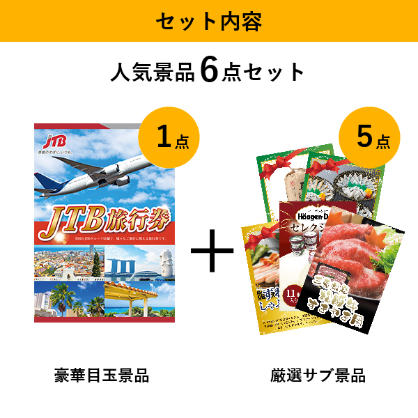 「JTB旅行券(1万円分)」が目玉の人気景品6点セットA| 結婚式 二次会 忘年会におすすめ!|景品ならPIARY(ピアリー)