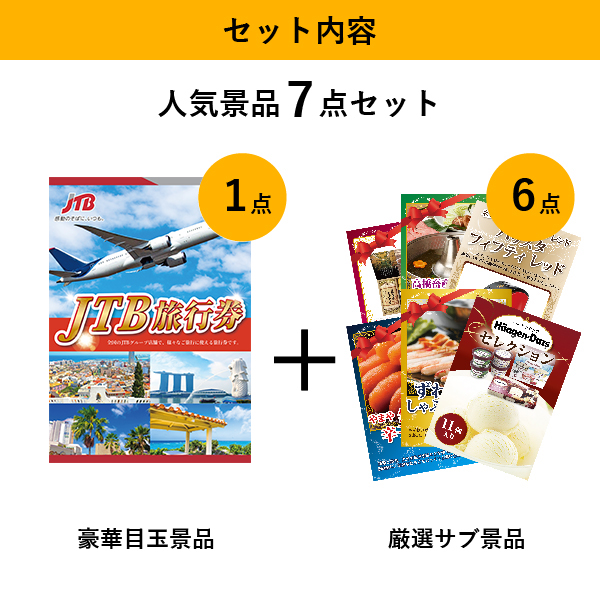 「JTB旅行券(1万円分)」が目玉の人気景品7点セットC| 結婚式 二次会 忘年会におすすめ!|景品ならPIARY(ピアリー)