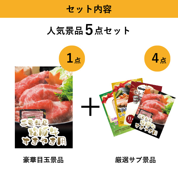 三重県産 松阪牛すきやき人気景品5点セットA(景品カード付)| 結婚式 二次会 忘年会におすすめ!|景品ならPIARY(ピアリー)