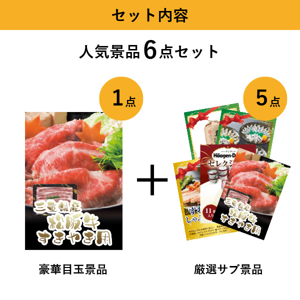 三重県産 松阪牛すきやき人気景品6点セットB(景品カード付)| 結婚式 二次会 忘年会におすすめ!|景品ならPIARY(ピアリー)
