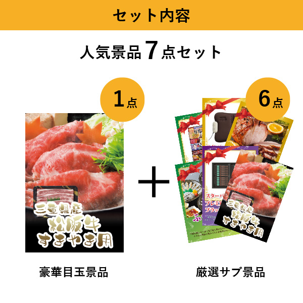 三重県産 松阪牛すきやき人気景品7点セットB(景品カード付)| 結婚式 二次会 忘年会におすすめ!|景品ならPIARY(ピアリー)