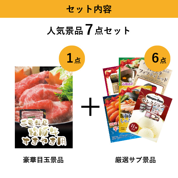 三重県産 松阪牛すきやき人気景品7点セットC(景品カード付)|景品ならPIARY(ピアリー)