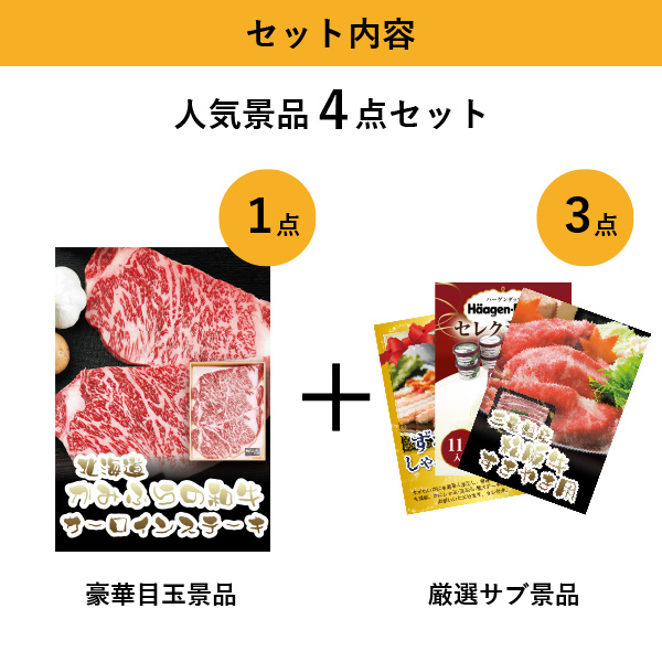 北海道かみふらの和牛サーロインステーキ人気景品4点セットA(景品カード付)|景品ならPIARY(ピアリー)