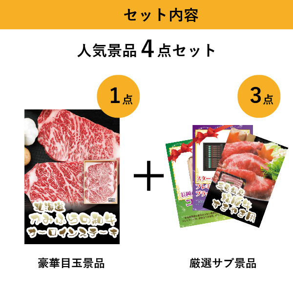 北海道かみふらの和牛サーロインステーキ人気景品4点セットB(景品カード付)|景品ならPIARY(ピアリー)