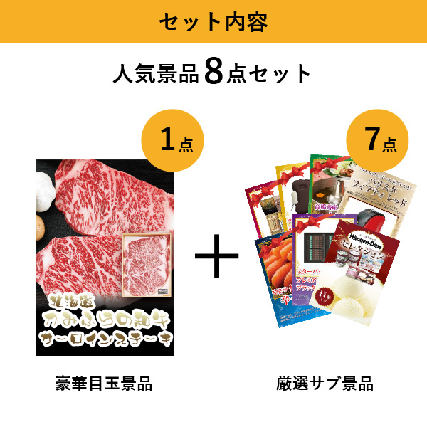 北海道かみふらの和牛サーロインステーキ人気景品8点セットC(景品カード付)|景品ならPIARY(ピアリー)