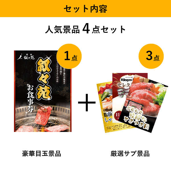 叙々苑お食事券(1万円分)人気景品4点セットA(景品カード付)|景品ならPIARY(ピアリー)