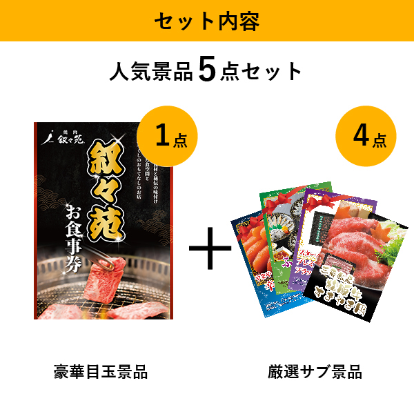 叙々苑お食事券(1万円分)人気景品5点セットB(景品カード付)| 結婚式 二次会 忘年会におすすめ!|景品ならPIARY(ピアリー)