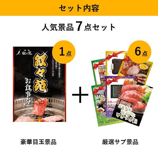 叙々苑お食事券(1万円分)人気景品7点セットB(景品カード付)| 結婚式 二次会 忘年会におすすめ!|景品ならPIARY(ピアリー)