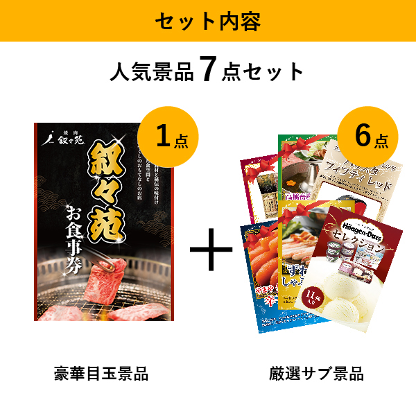 叙々苑お食事券(1万円分)人気景品7点セットC(景品カード付)| 結婚式 二次会 忘年会におすすめ!|景品ならPIARY(ピアリー)