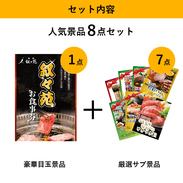 叙々苑お食事券(1万円分)人気景品8点セットB(景品カード付)|景品ならPIARY(ピアリー)