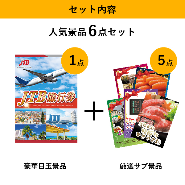 JTB旅行券(1万円分)人気景品6点セットB(景品カード付)| 結婚式 二次会 忘年会におすすめ!|景品ならPIARY(ピアリー)