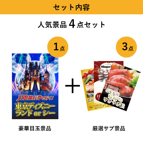 JTB旅行券(2万円分)で行こうディズニーランドorシー人気景品4点セットA(景品カード付)| 結婚式 二次会 忘年会におすすめ!|景品ならPIARY(ピアリー)