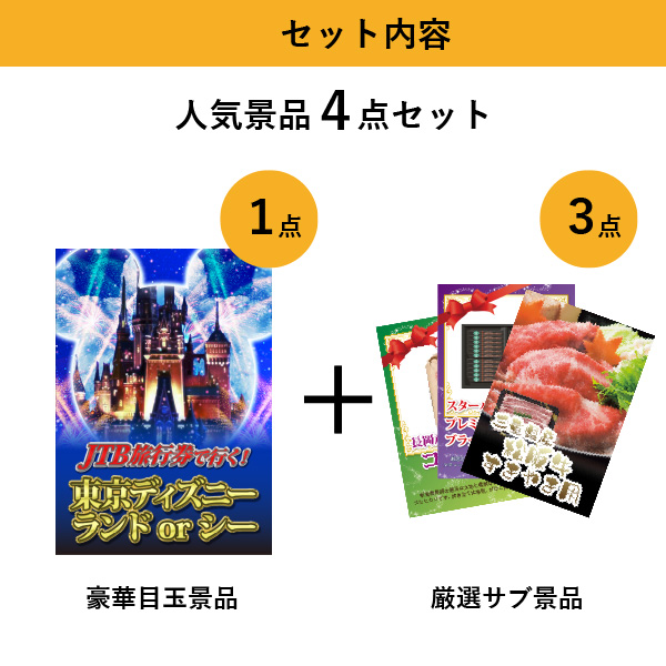 JTB旅行券(2万円分)で行こうディズニーランドorシー人気景品4点セットB(景品カード付)| 結婚式 二次会 忘年会におすすめ!|景品ならPIARY(ピアリー)