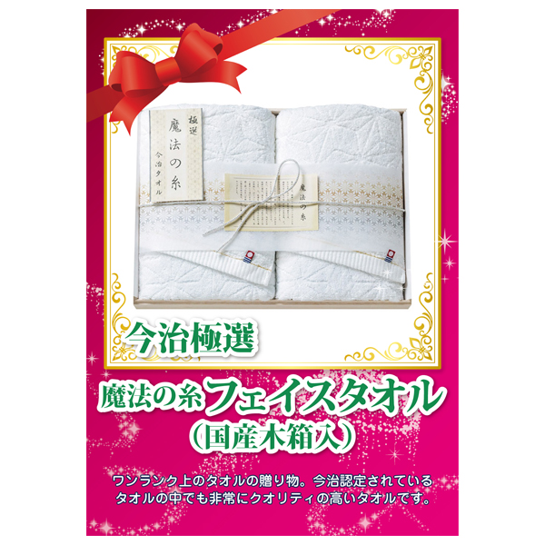 今治極選 魔法の糸 フェイスタオル2P(国産木箱入)【パネル・目録付】|景品ならPIARY(ピアリー)
