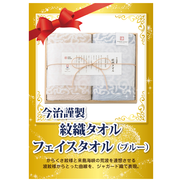 今治謹製 紋織タオル フェイスタオル2P(ブルー)【パネル・目録付】|景品ならPIARY(ピアリー)