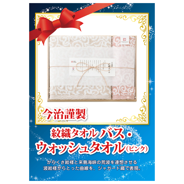 今治謹製 紋織タオル バス1P・ウォッシュタオル1P(ピンク)【パネル・目録付】|景品ならPIARY(ピアリー)