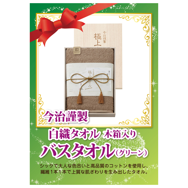 今治謹製 極上タオル 木箱入りバスタオル(グリーン)【パネル・目録付】|景品ならPIARY(ピアリー)