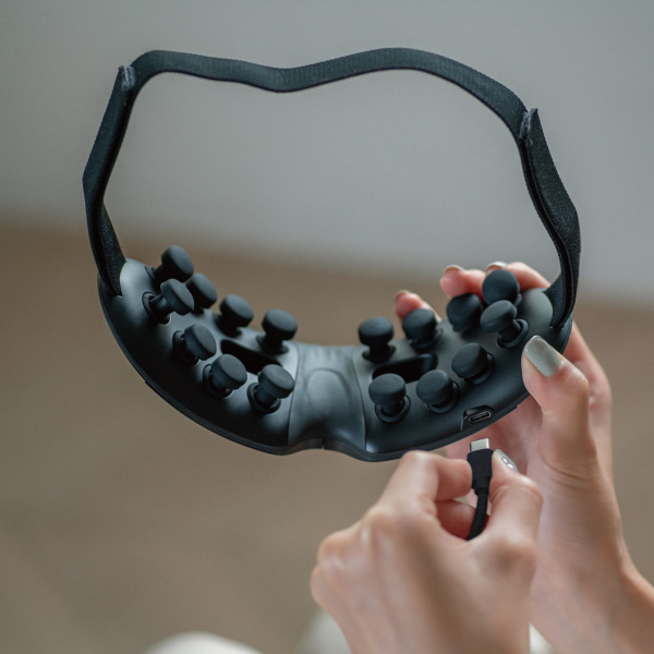 16個のタッピングヘッドが、1秒間に3回程度のリズムで、目のまわりをトントントンと心地よく刺激。花粉による目元ケアにも。 16個のタッピングヘッドには、それぞれ独立したミニモーターを搭載。 一つひとつが繊細に動いて、丁寧に刺激します。