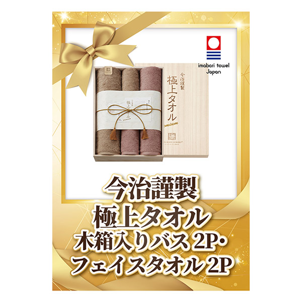 今治謹製 極上タオル 木箱入りバス2P・フェイスタオル2P【パネル・目録付】|景品ならPIARY(ピアリー)