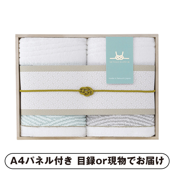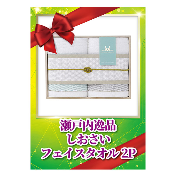 愛媛県今治産「瀬戸内逸品」のフェイスタオル2枚セット。瀬戸内海をイメージした上品なデザインで、木箱入りのためギフトに最適です。贈る方に高級感と心地よい肌触りを届け、特別な日の贈り物としても喜ばれる逸品です。