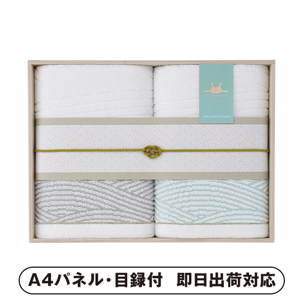 今治産「瀬戸内逸品」のバスタオル2枚セット。瀬戸内海をモチーフにした上品なデザインを木箱に収め、贈り物に最適。贈る方に高級感と柔らかな使い心地を届け、日常のバスタイムを豊かに彩るタオルギフトです。