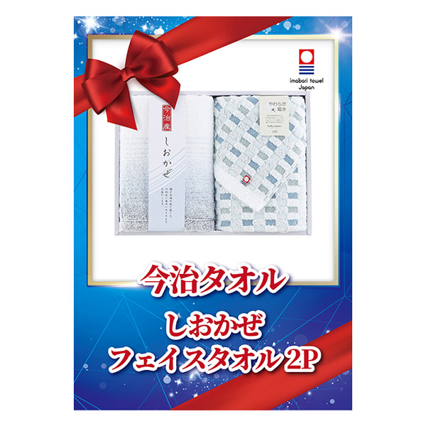 その名の通り、瀬戸内を吹き抜けるしおかぜのような、涼やかなデザインの今治フェイスタオル2枚のギフトです。ふんわりソフトな質感で優れた吸水性が特徴。爽やかなデザインが男性、女性問わず人気の今治タオルシリーズです。