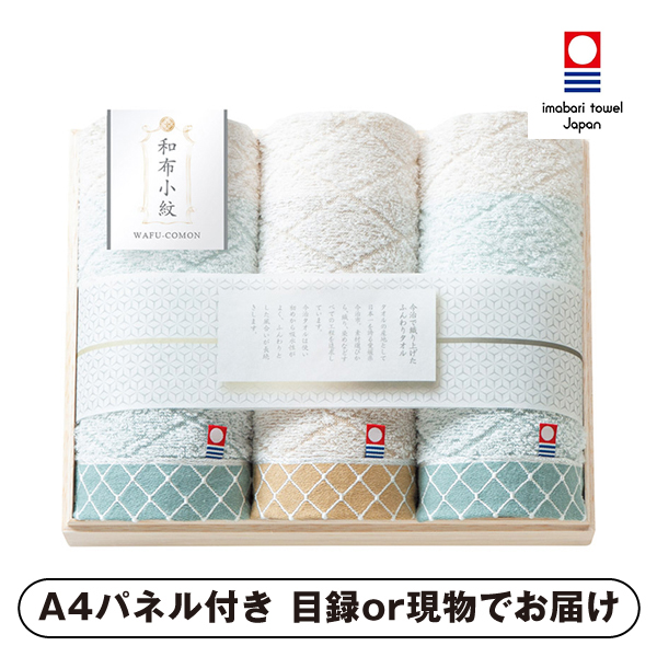 日本一のタオル産地・今治で丁寧に織り上げられた高品質タオルを、格調高い木箱に入れて贈ります。日本伝統の小紋柄をあしらったタオルは、和の美しさをシンプルに伝えます。どんな場にも馴染むので、使いやすいタオルです。