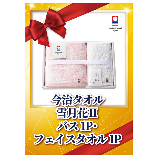 優雅な「雪月花II」デザインのバスタオル1枚とフェイスタオル1枚のセット。柔らかく使いやすい肌触りで、日常のバスタイムを快適にし、贈り物としても喜ばれる上品なタオルギフトです。落ち着いた色合いと洗練されたデザインが魅力の逸品です。