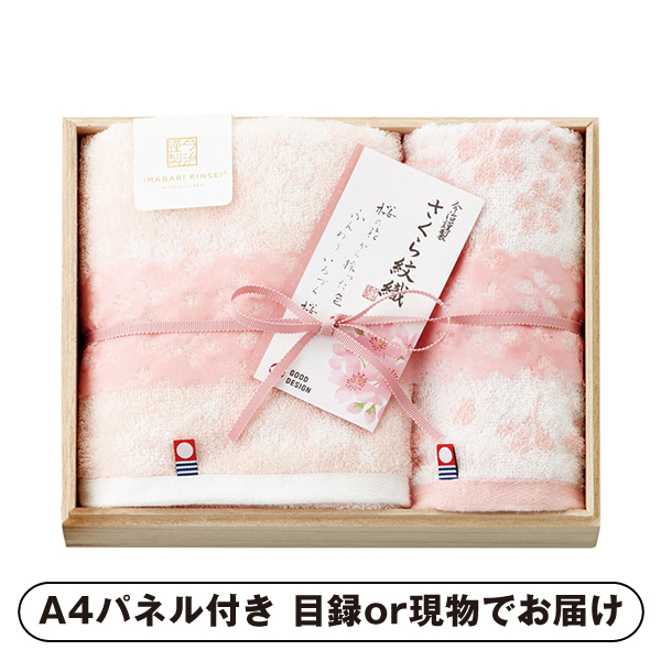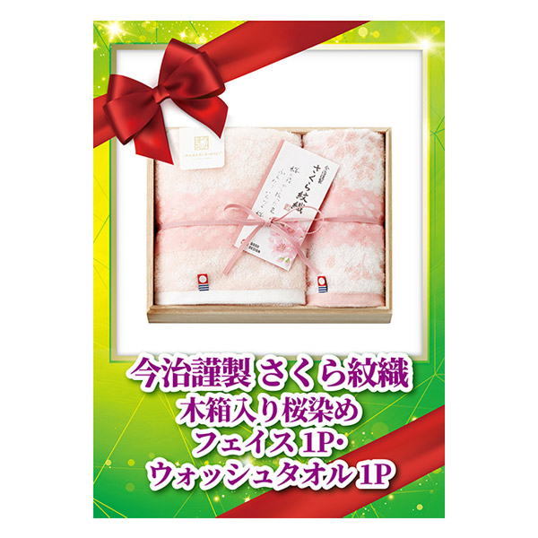 今治謹製 さくら紋織 木箱入り桜染めフェイス1P・ウォッシュタオル1P【パネル・目録付】|景品ならPIARY(ピアリー)