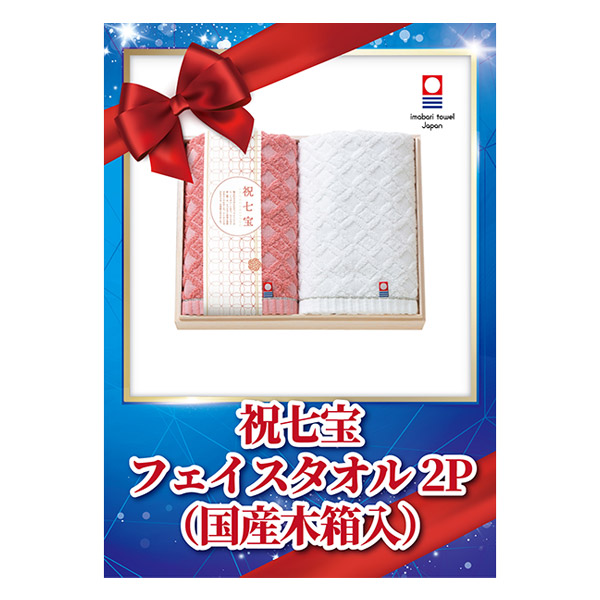 吉祥紋様のひとつである七宝をあしらった紅白のタオルを木箱に入れてお届けします。輪が四方八方に広がっていくことから「しっぽう」となり、人と人のご縁(輪)は、七つの宝と同等の価値があるとされました。そこから七宝の名がつき、縁起の良い吉祥柄のひとつとなりました。